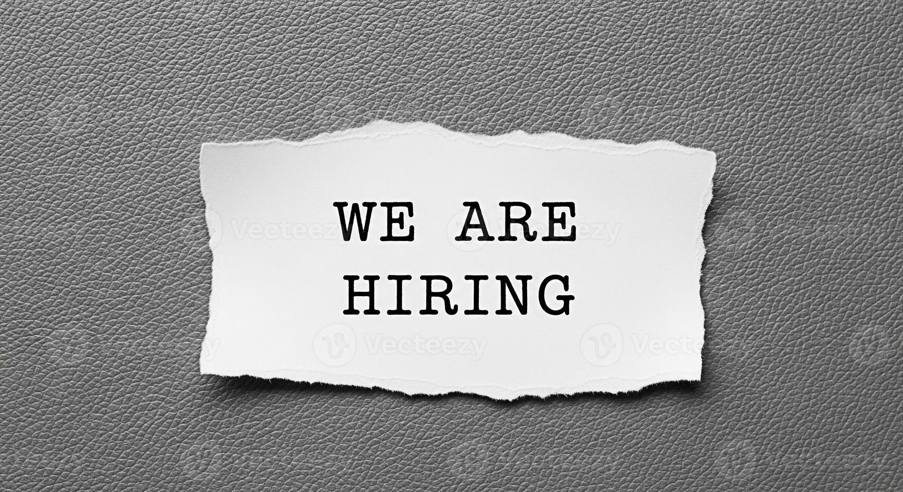 Torn paper displaying We Are Hiring on a textured gray background symbolizing job opportunities and company growth creating a sense of urgency and excitement for potential candidates in a competitive Pro Photo