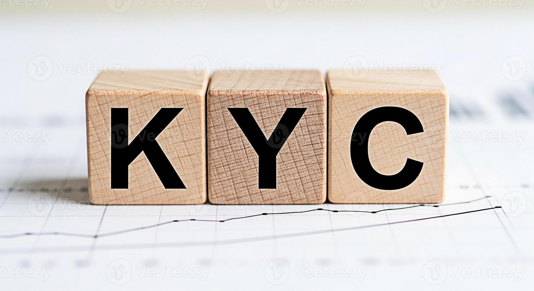 Wooden blocks spelling KYC on a financial chart representing Know Your Customer compliance in a business setting emphasizing trust and regulatory adherence for secure transactions and risk management Pro Photo