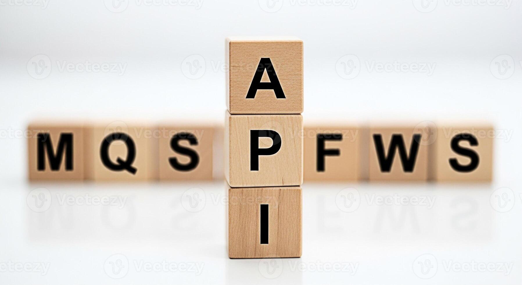 Wooden blocks displaying API in a bright studio environment representing application programming interface software development and integration conveying a message of connectivity and innovation Pro Photo