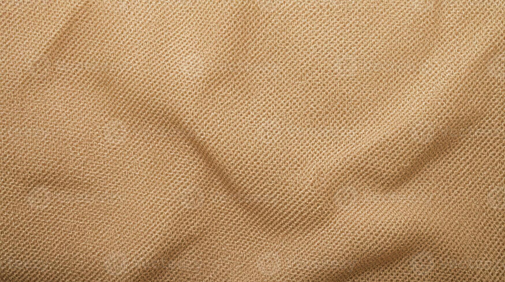 A close-up of beige woven fabric reveals a textured surface with soft folds creating subtle shadows, perfect for backgrounds and designs. Pro Photo
