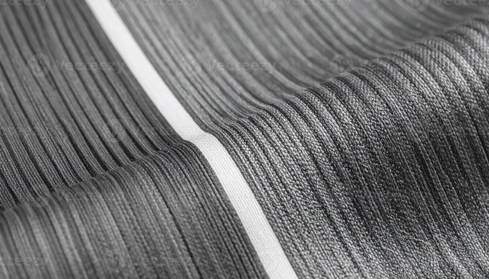 Close-up shows the intricate texture of a ribbed grey fabric with a bright white stripe running vertically across the surface of the material. Pro Photo
