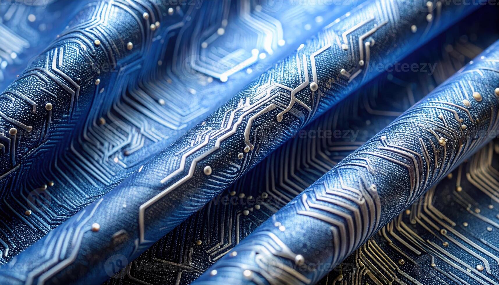 Abstract blue fabric design with a circuit board pattern, creating a modern, technological and futuristic aesthetic for visual appeal. Pro Photo