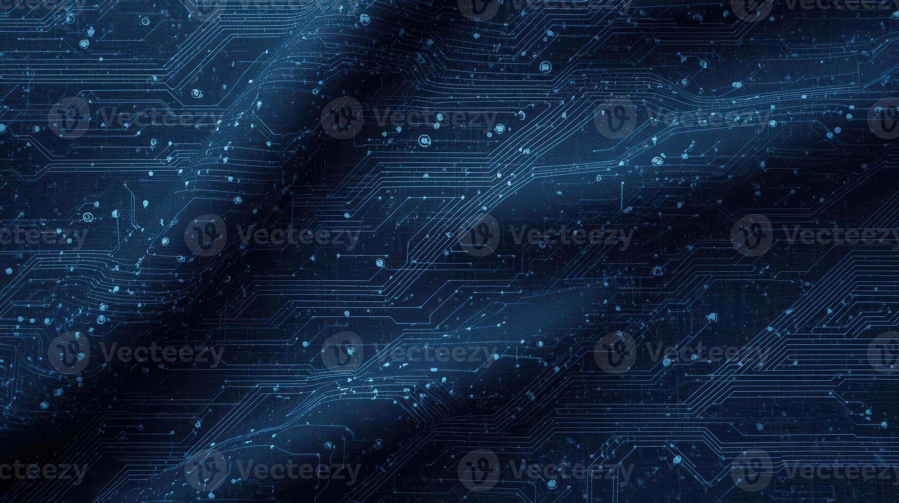 Digital technology abstract background with glowing circuit board pattern representing modern connectivity and future innovation in dark blue color. Pro Photo