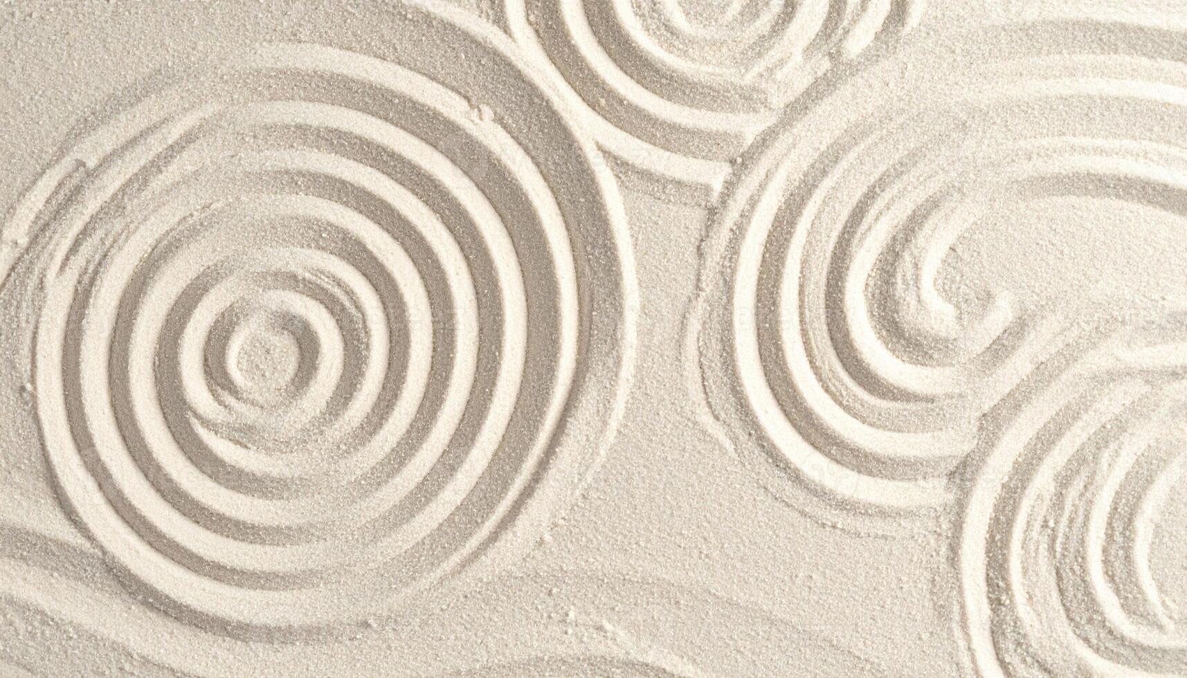 Concentric sand circles create a zen-like pattern, invoking relaxation and a sense of calm on a pristine surface of bright white sand. Pro Photo