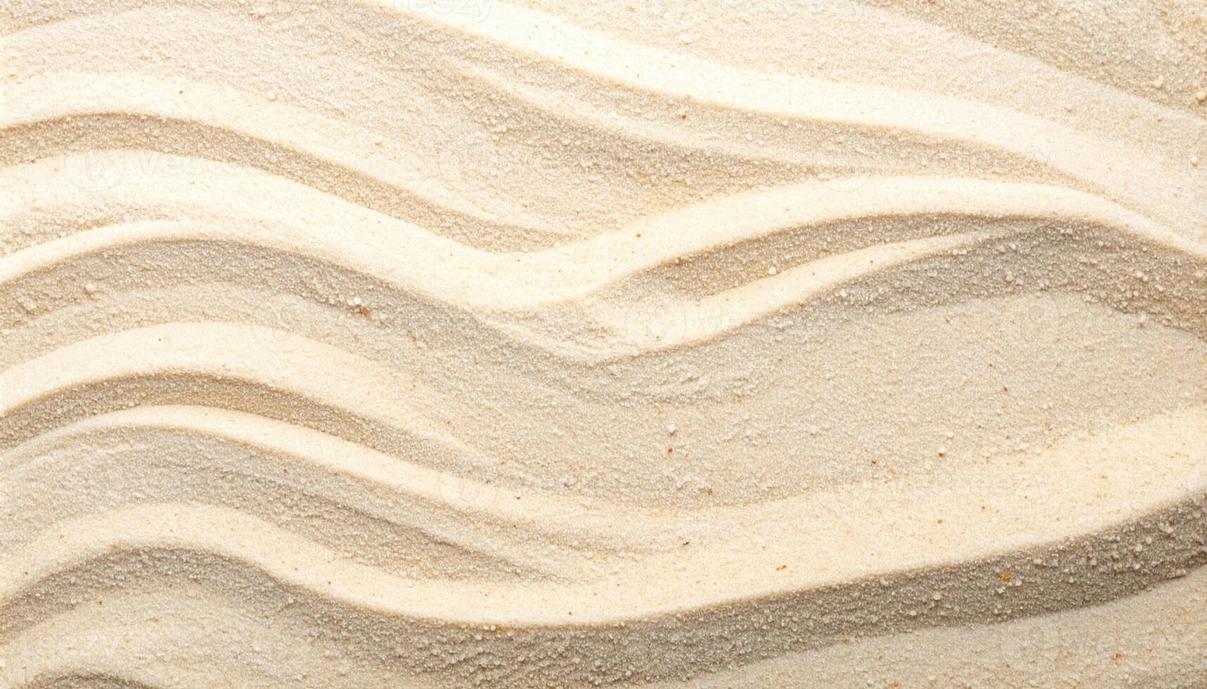 The delicate, wave-like patterns etched into the pristine white sand create a soothing and natural textured surface for a beach backdrop. Pro Photo