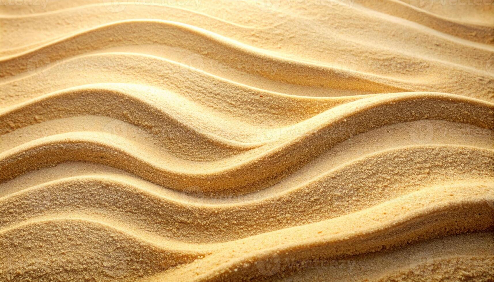 Golden sand dune waves form abstract rippled pattern from wind erosion creating beautiful sandy texture on a sunny day at the beach. Pro Photo