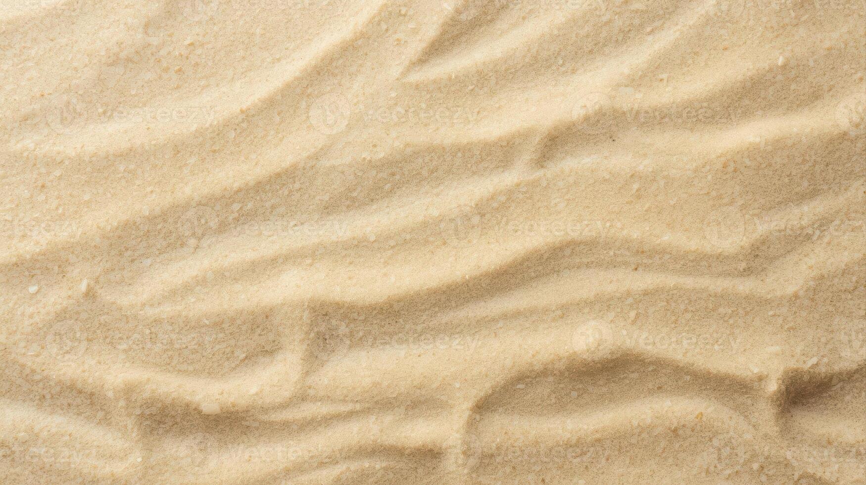 Top down view showing rippled golden sand creating abstract textures, patterns, and flowing lines on a natural beach background surface. Pro Photo