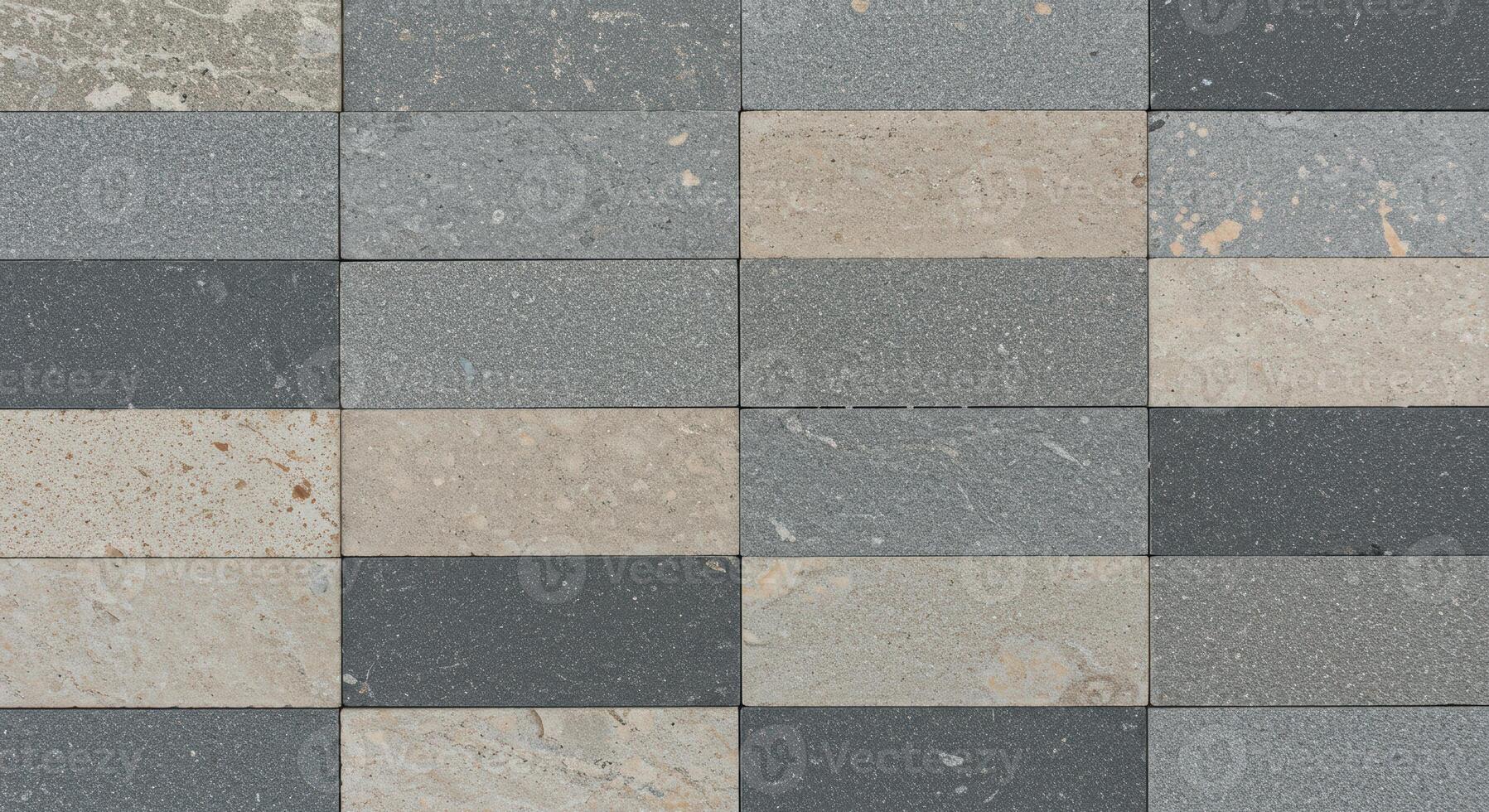 A horizontally stacked arrangement of rectangular stones featu various gray and beige shades creating a textured architectural surface design. Pro Photo