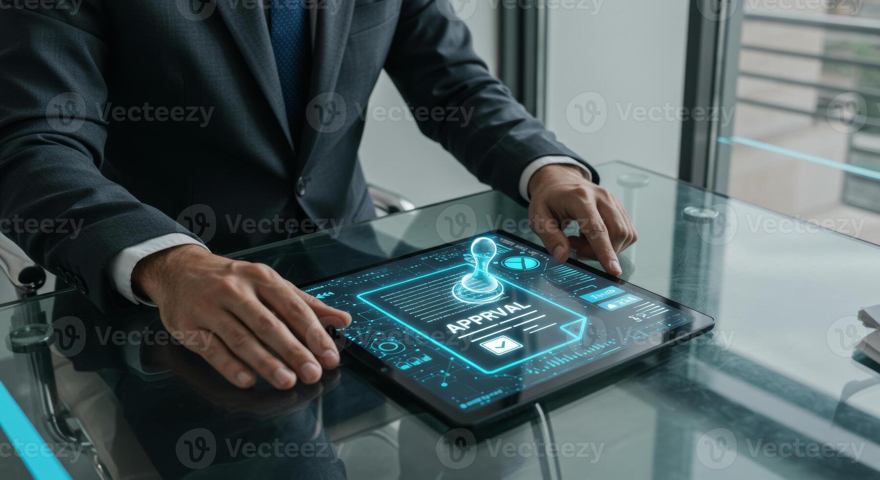 Streamlining processes Man uses digital approval system on tablet Pro Photo