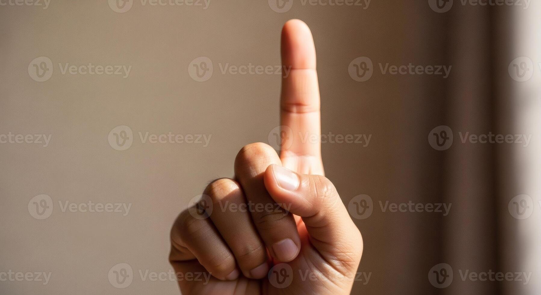 Close up of a Hand with Index Finger Pointing Upwards Symbolizing One Number One Success or a Great Idea Pro Photo