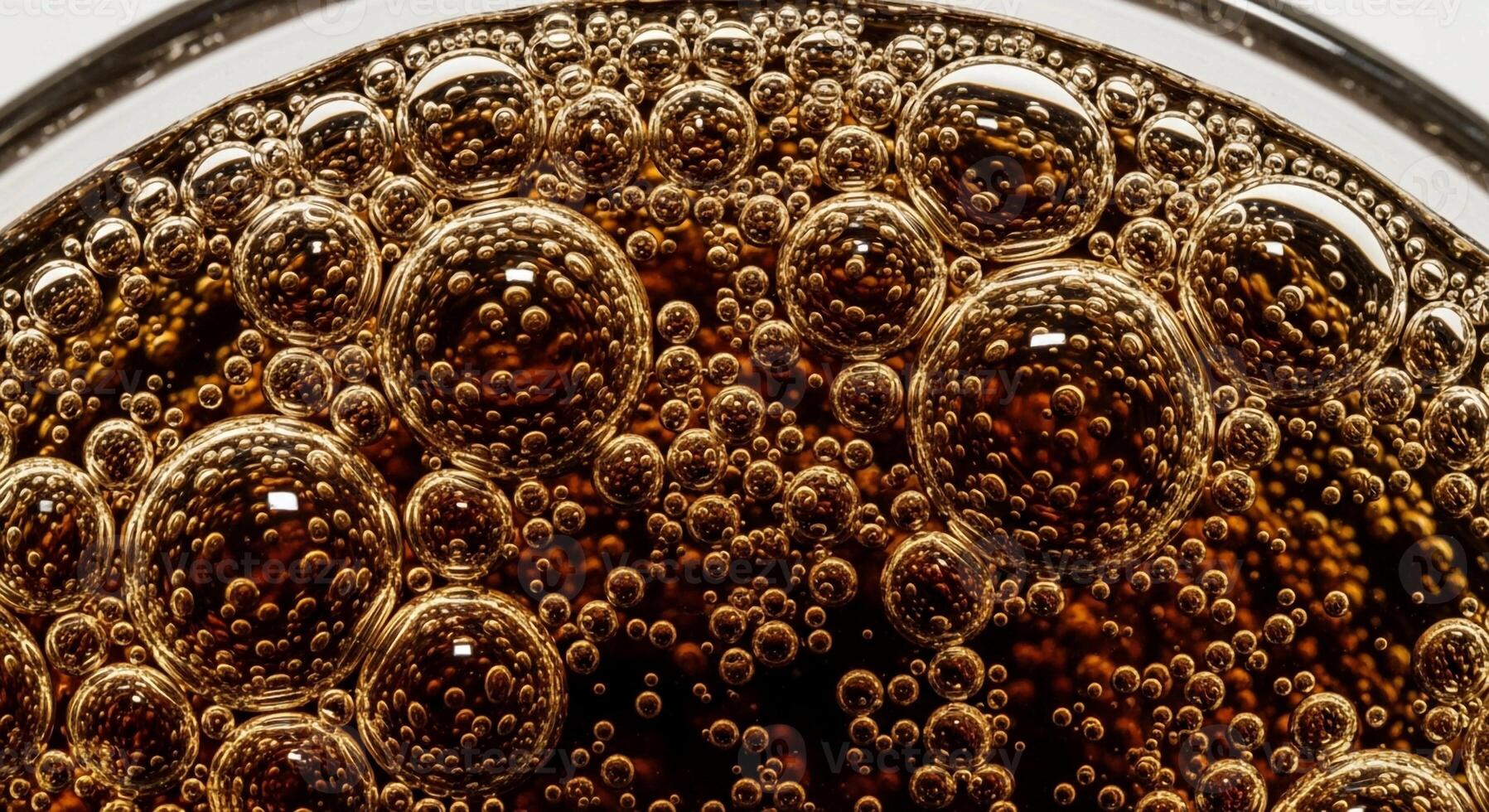 Close up view of numerous small and large brown bubbles forming a textured pattern within a transparent medium Pro Photo