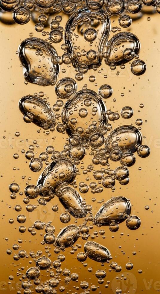 Abstract macro view of golden bubbles rising through a viscous liquid creating a dynamic and textured surface Pro Photo