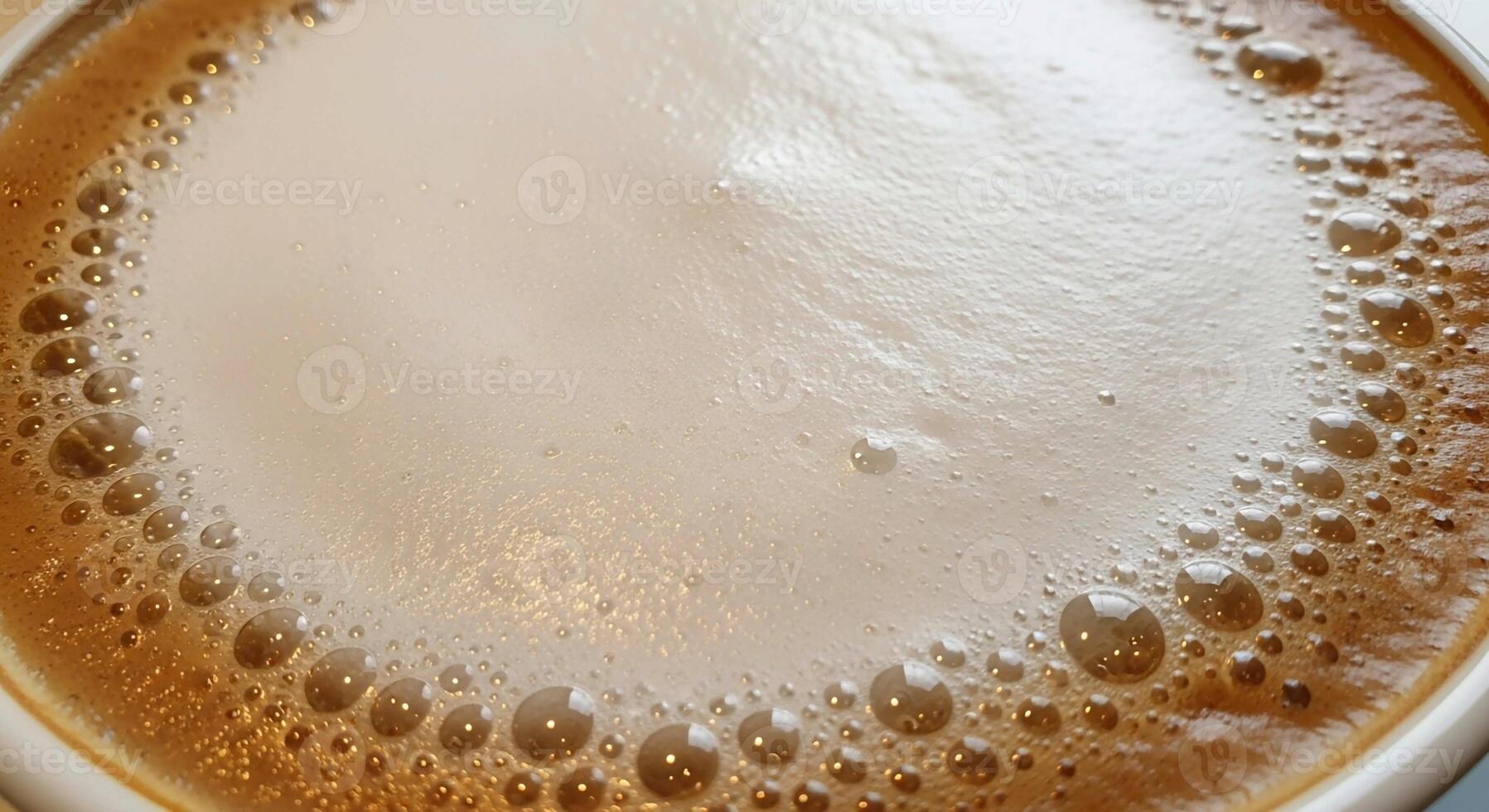 Close up overhead view of frothy cappuccino with creamy foam and tiny bubbles in a warm inviting cup Pro Photo