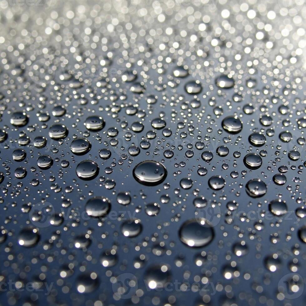 Close up macro photograph of numerous small water droplets scattered across a dark reflective surface creating a textured pattern Pro Photo