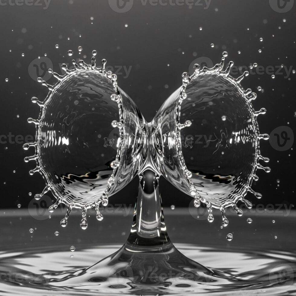 Symmetrical water drops collide creating a stunning ephemeral butterfly shape with intricate splash patterns frozen in time Pro Photo