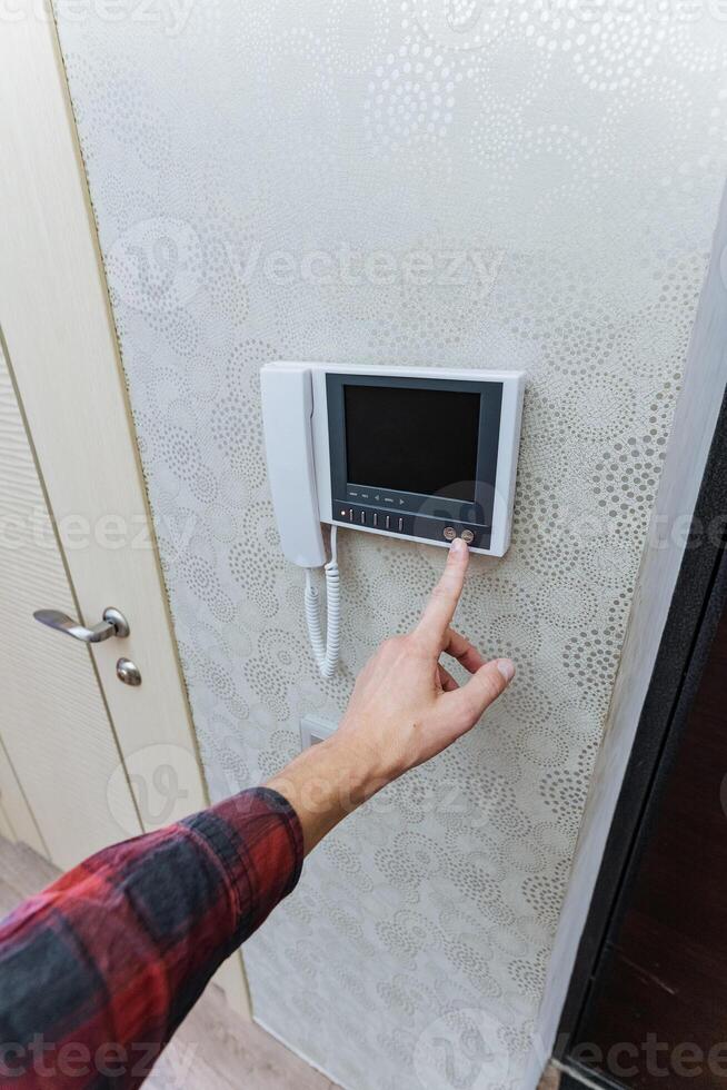 quick access security routine as resident confirms visitor identity through intercom interface Pro Photo
