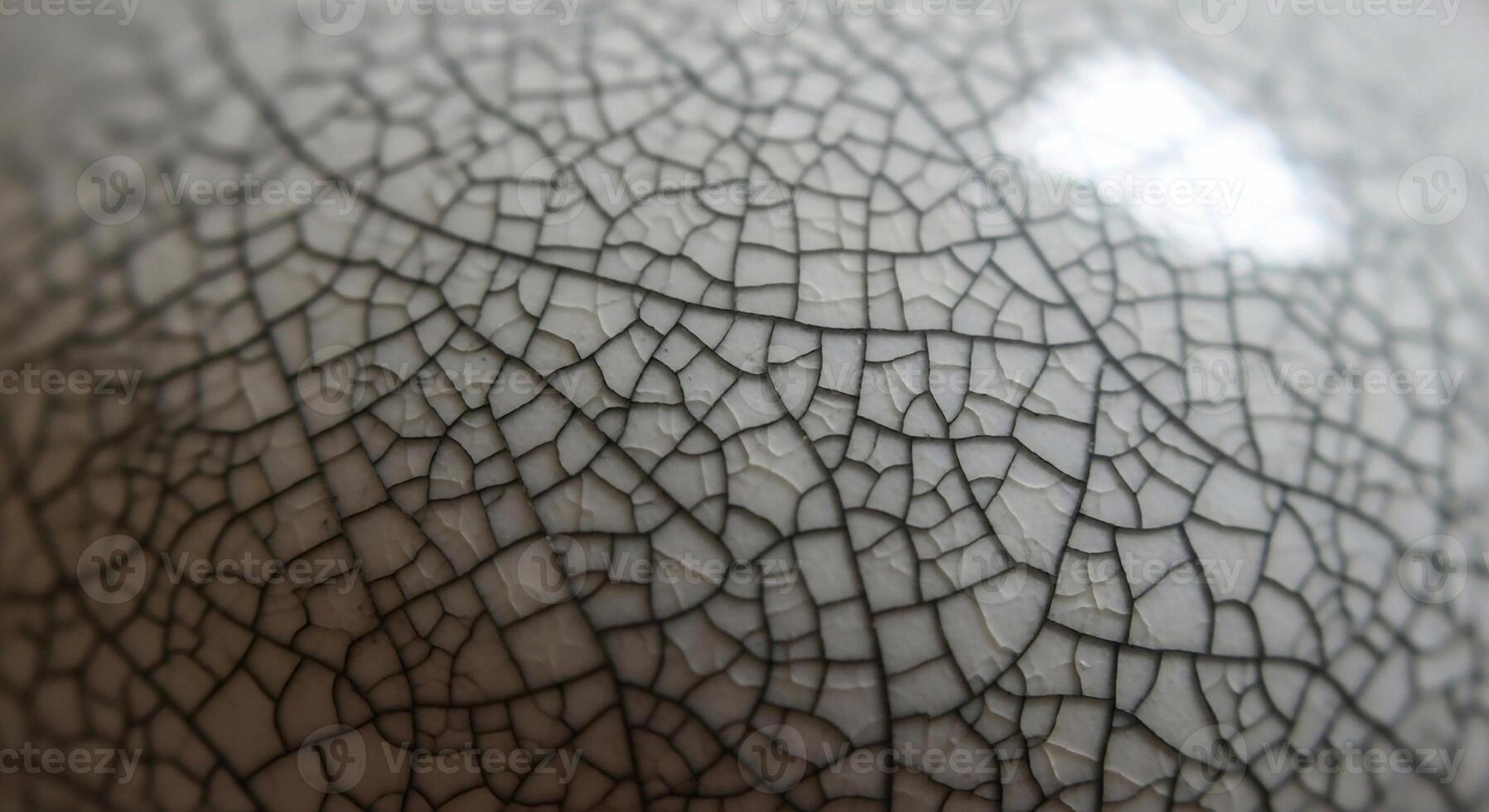 Close up macro view of intricate fine black crackle glaze patterns on a ceramic surface with subtle light reflections Pro Photo