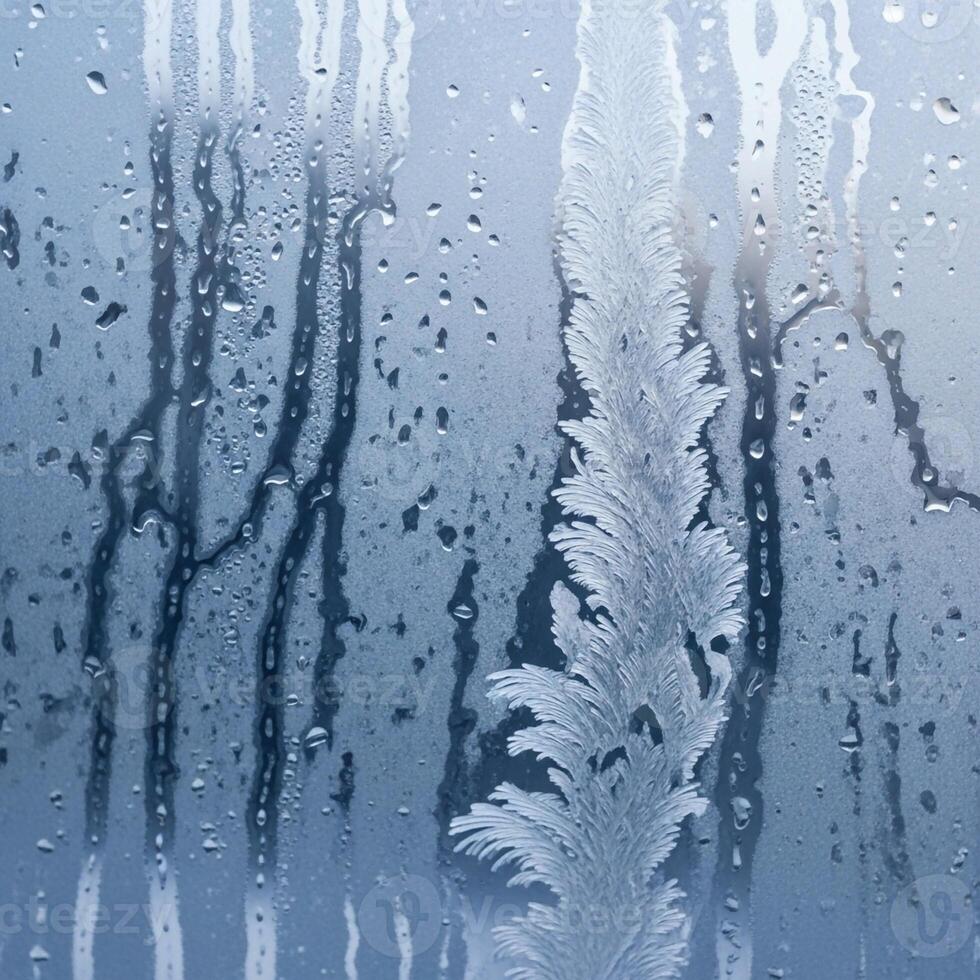 Close up view of condensation on a window pane with water droplets and streaks creating an abstract textured background effect Pro Photo