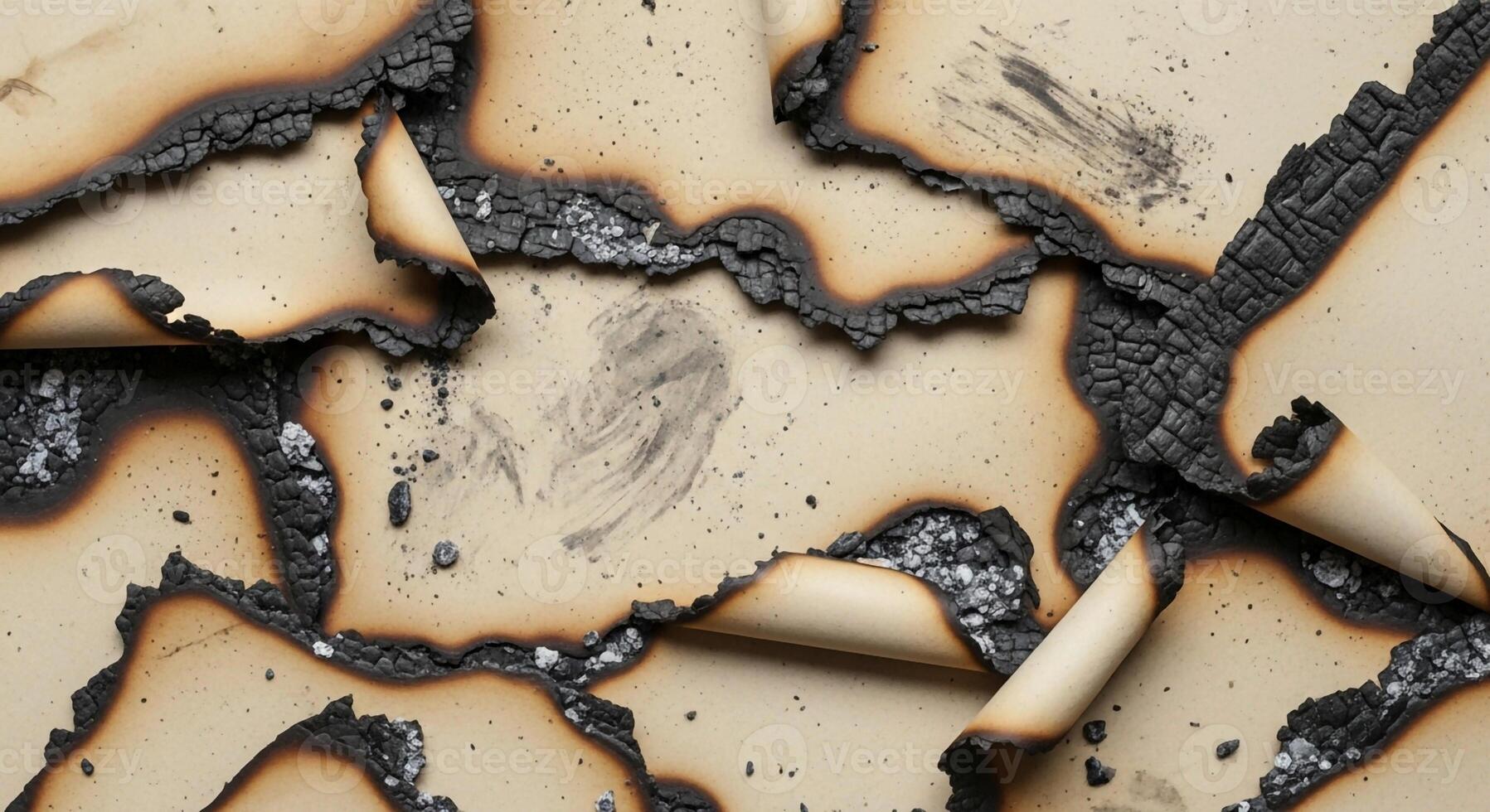 Close up abstract view of charred edges and burnt paper textures with visible ash and charring details creating a dramatic visual Pro Photo