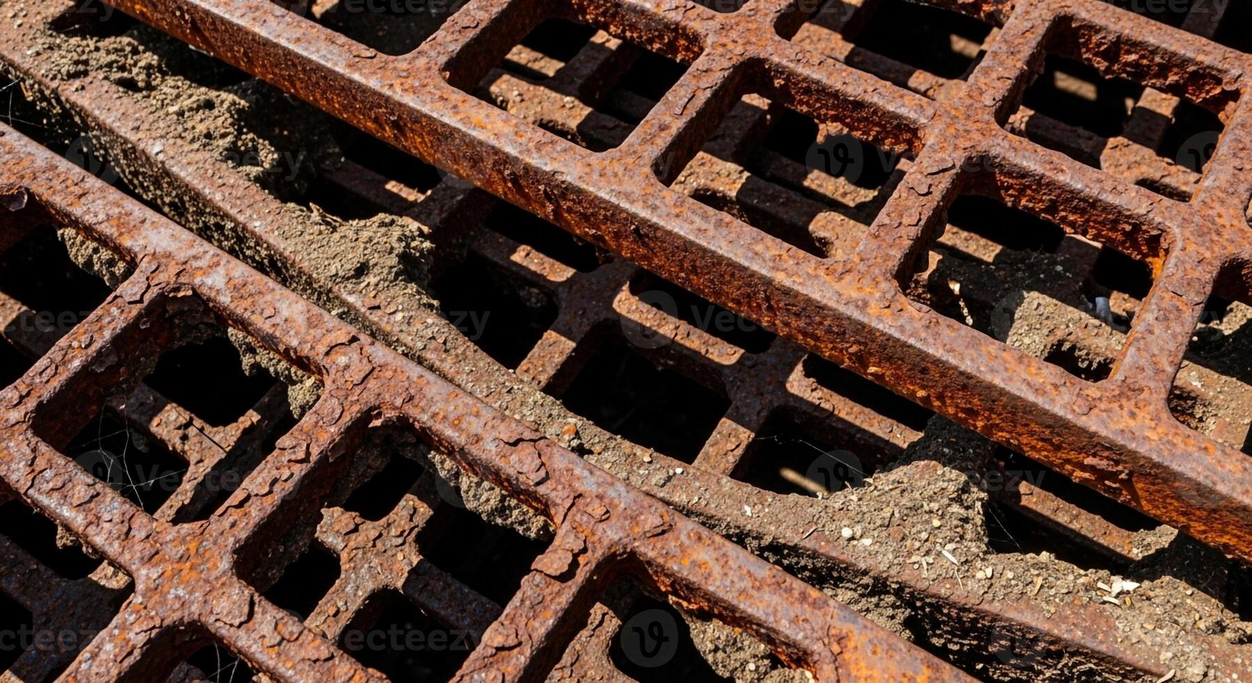 Close up view of weathered and rusted diamond patterned metal grating with a textured surface and deep shadows Pro Photo