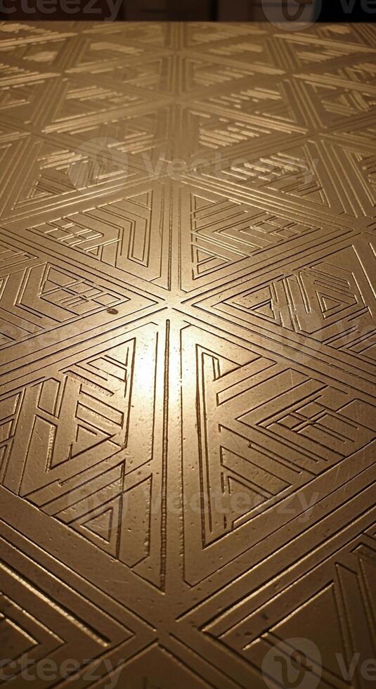 Intricate geometric pattern on a metallic surface with a warm golden hue and linear design Pro Photo
