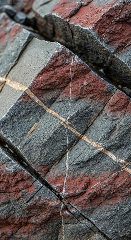 Intricate natural rock formation displaying a striking diagonal pattern of red and gray layers with subtle veining Pro Photo