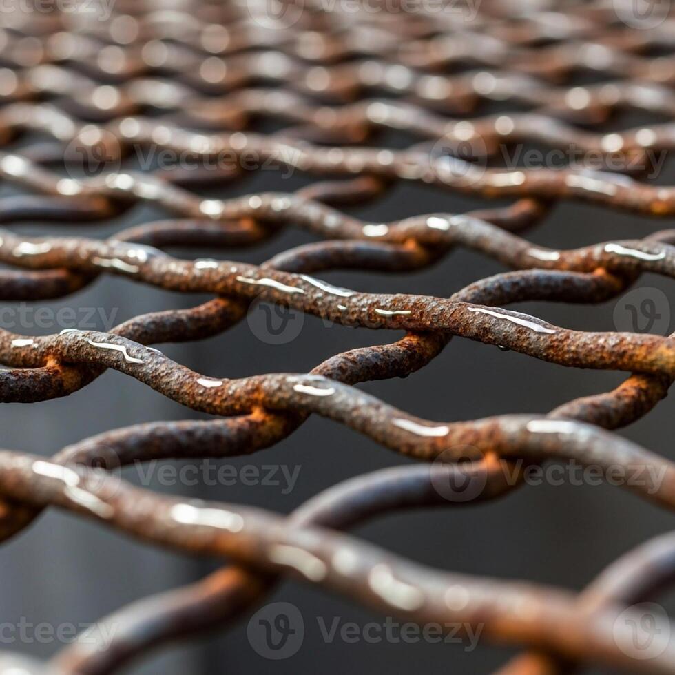 Close up abstract view of weathered rusty metal grid with intricate woven pattern and shallow depth of field Pro Photo