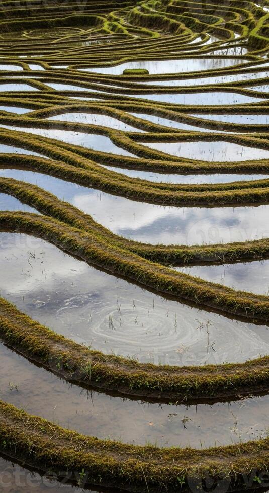 A man is standing in a field with a large number of rows of grass Pro Photo