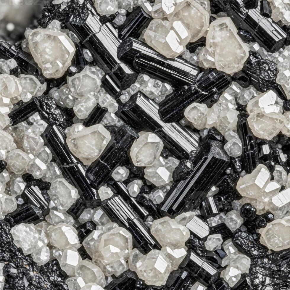 Close up abstract macro photograph of sparkling black and white crystal fragments and geometric shapes creating a textured background Pro Photo