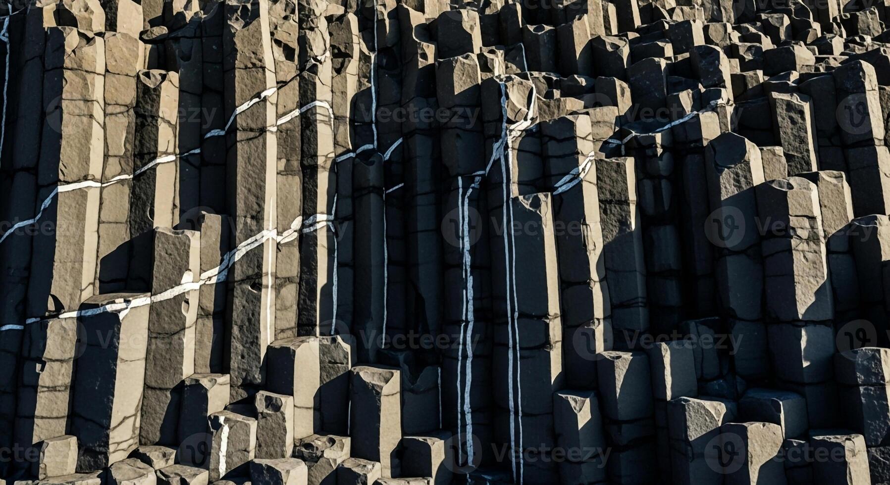Close up view of naturally formed hexagonal basalt columns creating a textured geological pattern in sunlight Pro Photo
