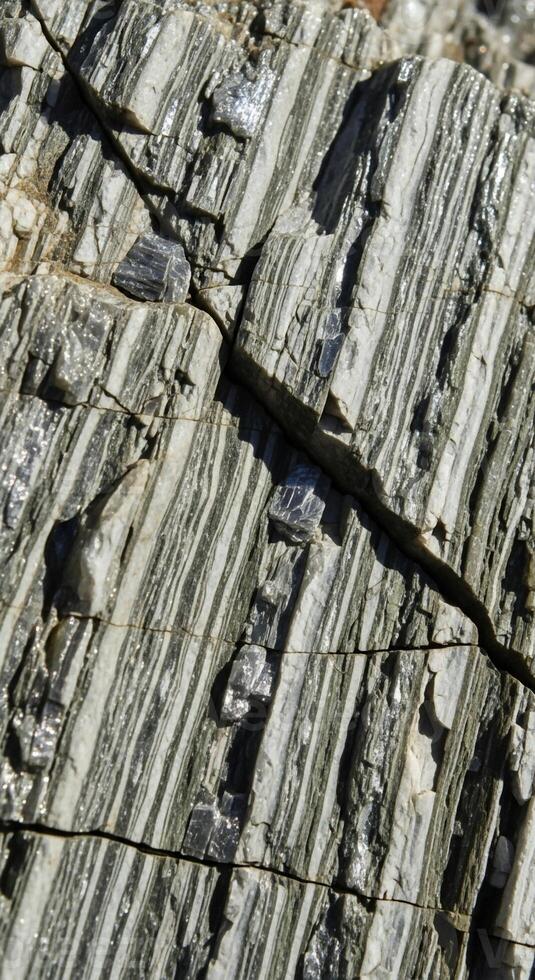 Close up view of a weathered rock surface showcasing intricate striations and dark mineral inclusions creating a natural abstract pattern Pro Photo
