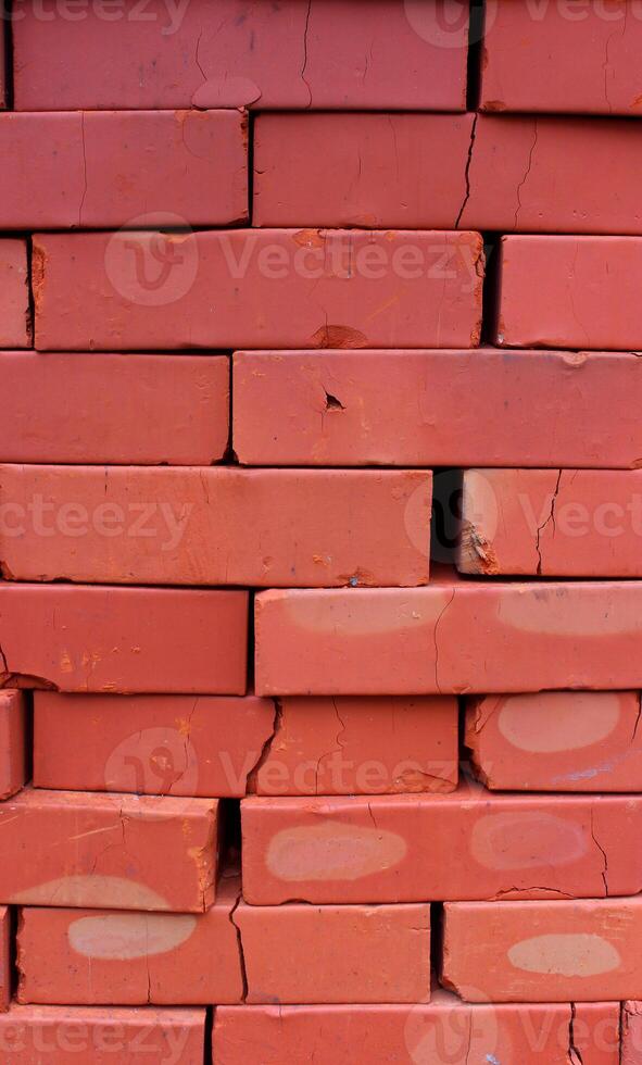 Pattern of Construction Bricks in a Stack with Cracks Detailed Stock Photo. Construction Material Vertical Background Pro Photo