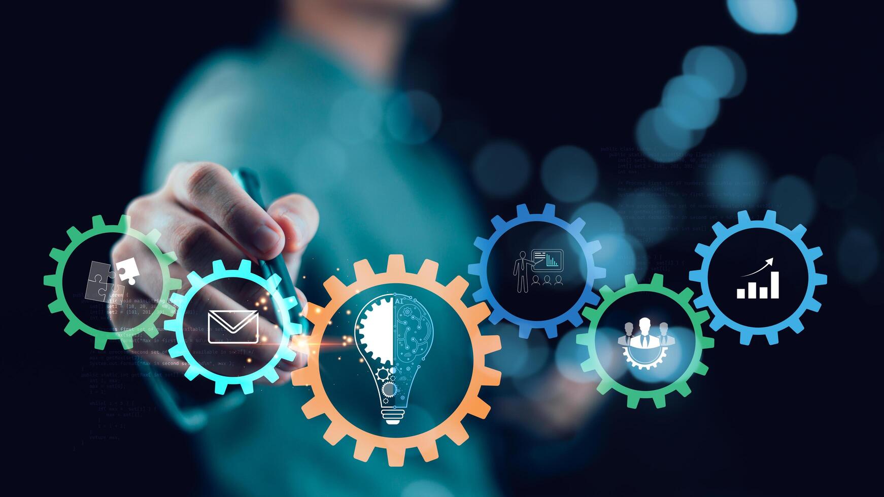 conceptual image illustrates strategic innovation, automation, seamless business process integration, enabling smarter decision-making, productivity, and efficient workflow systems across industries. photo