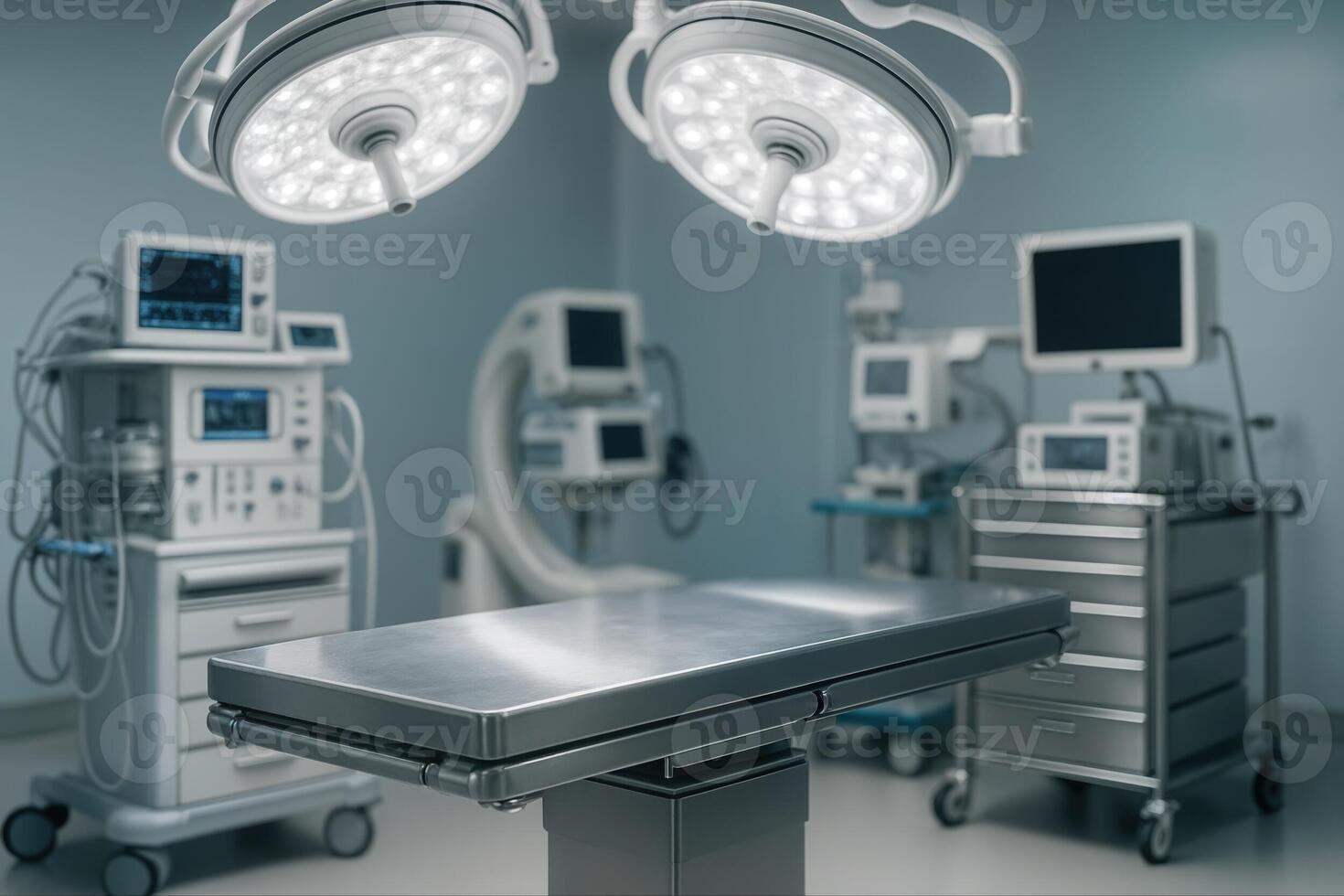 Operating Room With Modern Surgical Equipment and Overhead Lights, Featuring a Clean and Sterile Environment With Shallow Depth of Field Pro Photo