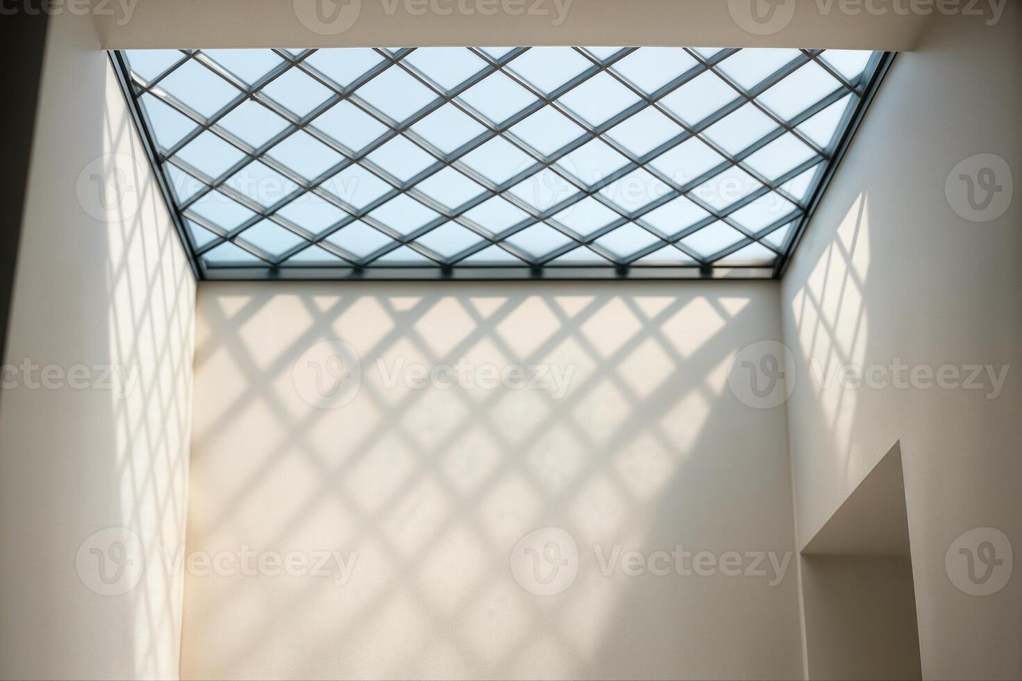 Atrium With Diagrid Rooflight Casting Geometric Shadows Indoors Creating A Modern Architectural Look With Natural Light Illuminating The Walls Pro Photo