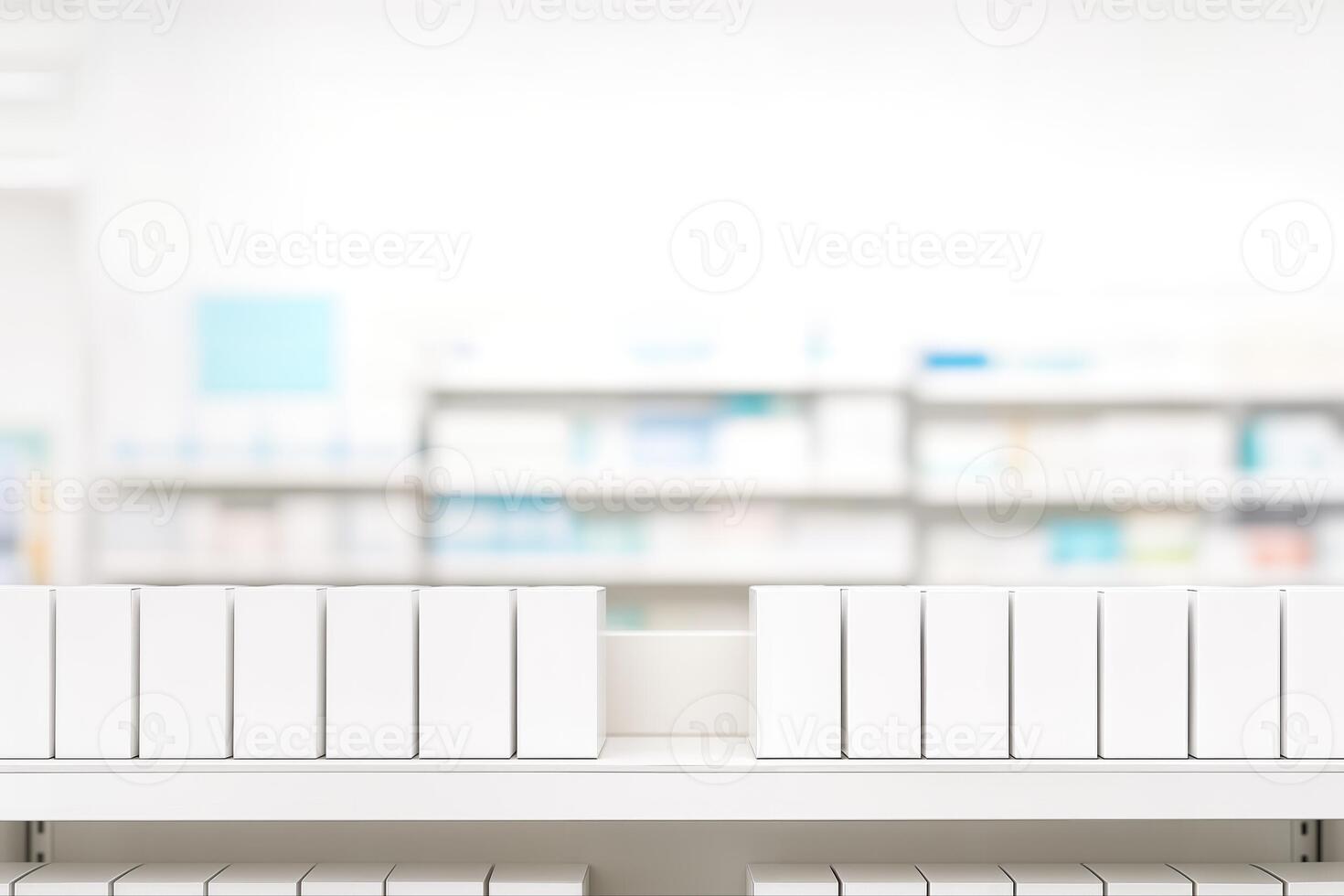 Pharmacy Shelf With Empty White Boxes in a Bright Indoor Setting Suggesting Inventory or Organization With Shallow Depth Of Field Pro Photo