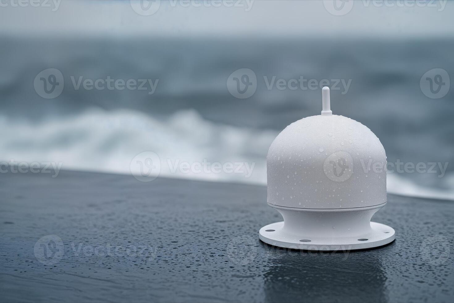 Ocean Sensor Positioned on a Ship Deck Overlooking the Ocean with Waves in the Background on a Cloudy Day with Shallow Depth of Field Pro Photo