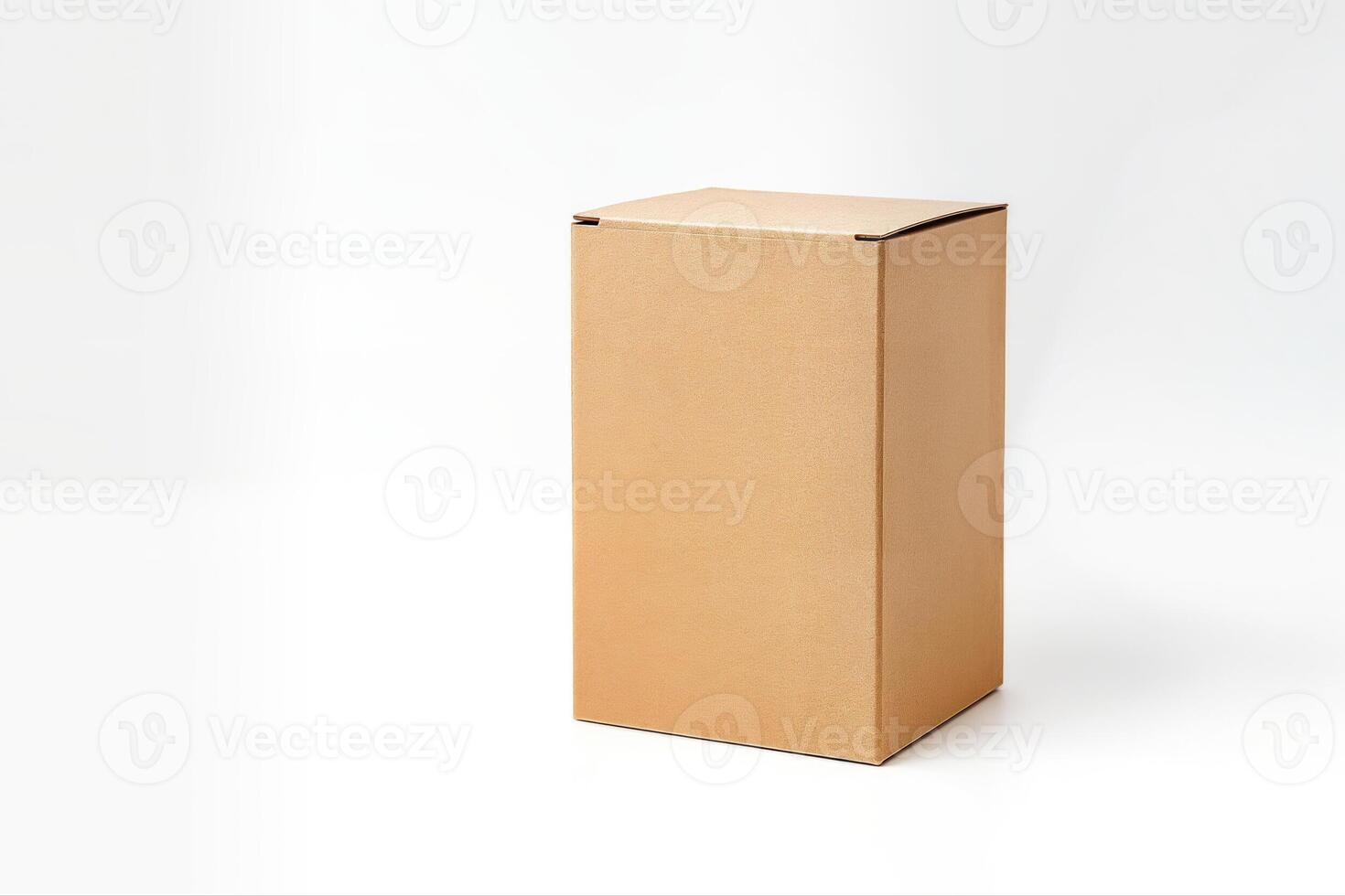 Cardboard Box Mockup In Minimalist Setting Against A White Background With Clean Lines And Symmetrical Composition Perfect For Product Display Pro Photo