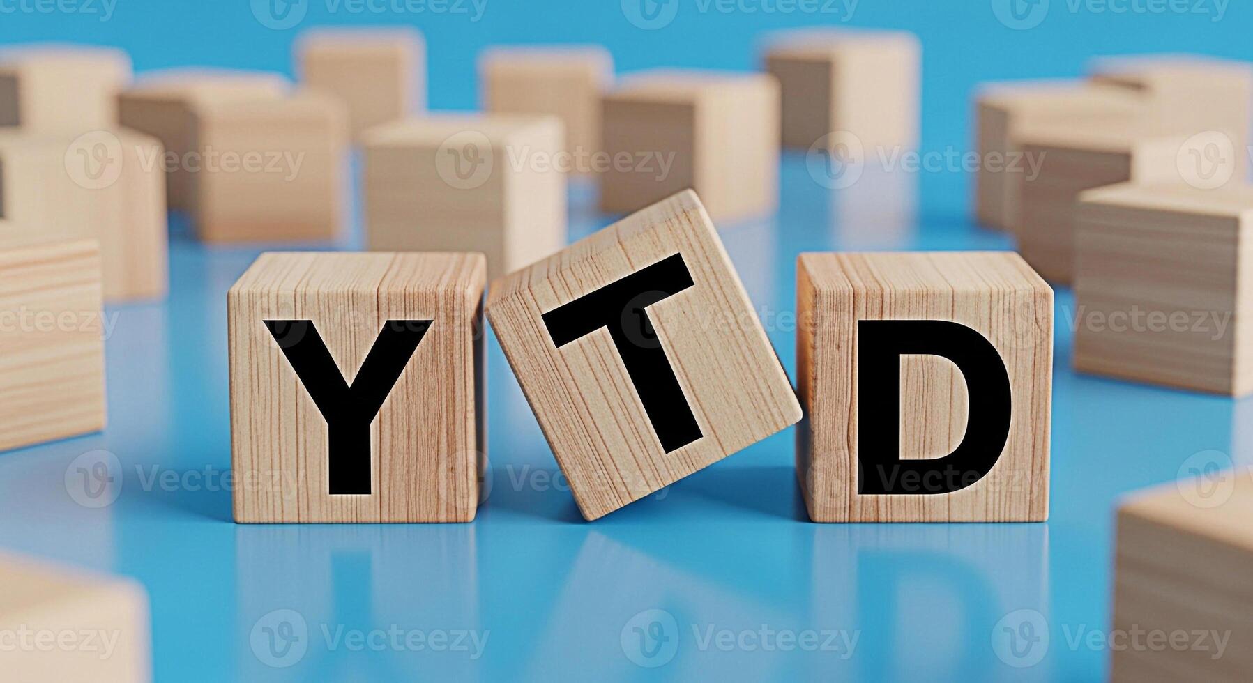 Wooden blocks displaying YTD on a blue surface representing Year To Date financial performance and progress tracking in a business setting conveying a sense of achievement and accountability Pro Photo