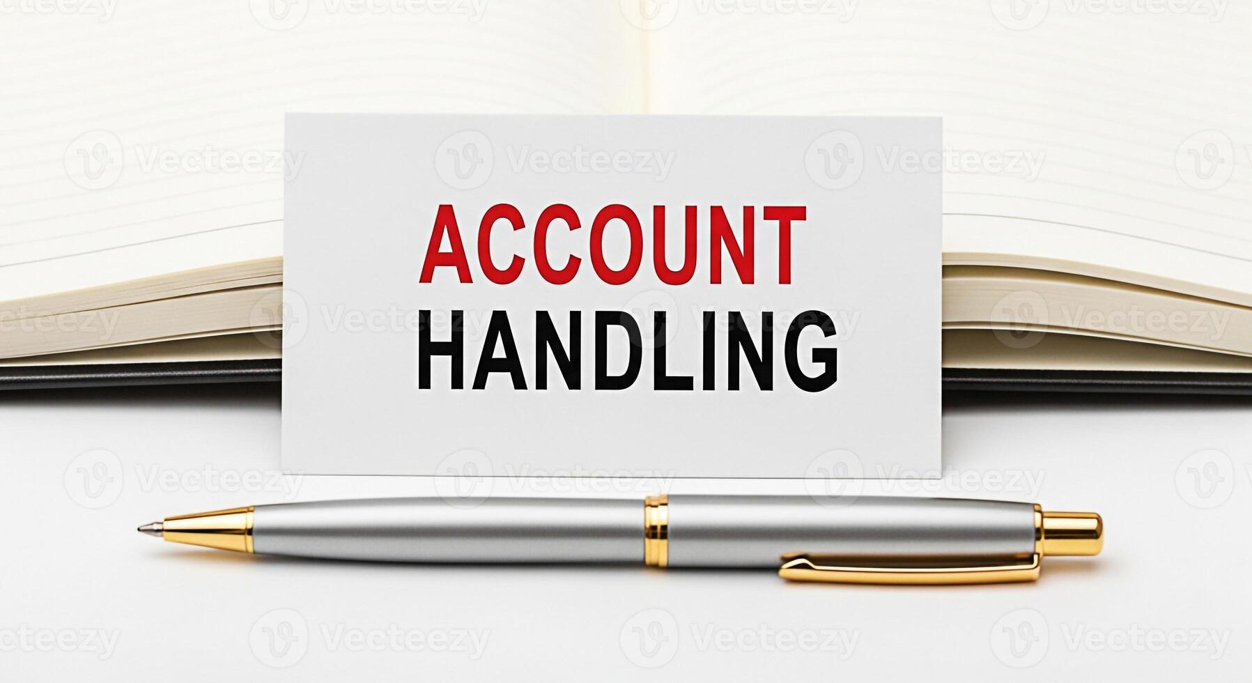 Account handling message displayed on a white card with a pen in a bright studio setting representing financial management and professional business solutions for accounting and customer relationship Pro Photo