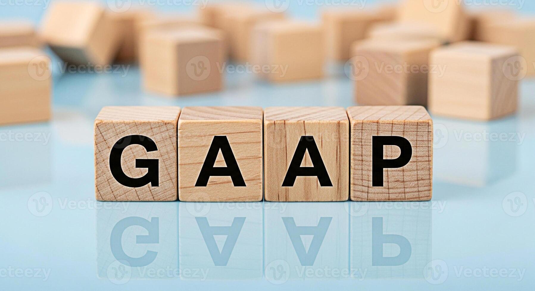 Wooden blocks spelling GAAP on a reflective blue surface representing financial compliance and transparency in business accounting conveying a sense of order and reliability in financial reporting Pro Photo