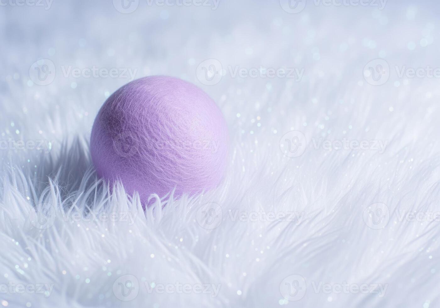 Soft purple wool ball resting on white fluffy texture with gentle bokeh light Pro Photo