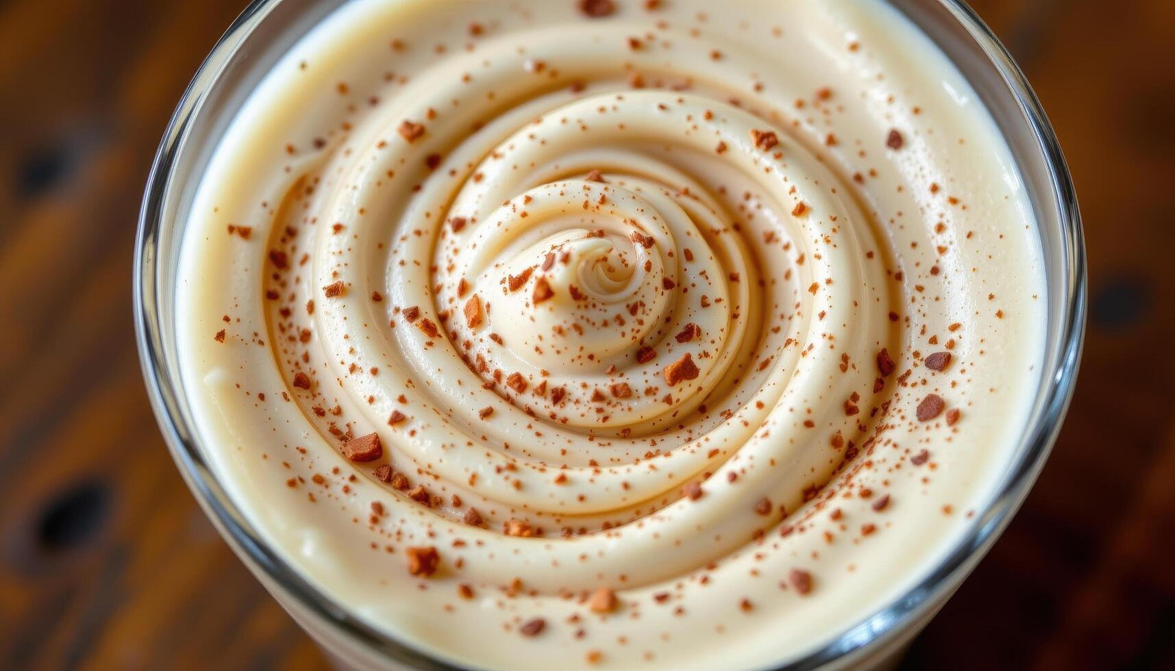 A mousse in a clear glass cup reveals subtle layering, with creamy tones blending softly in a visually harmonious composition. photo