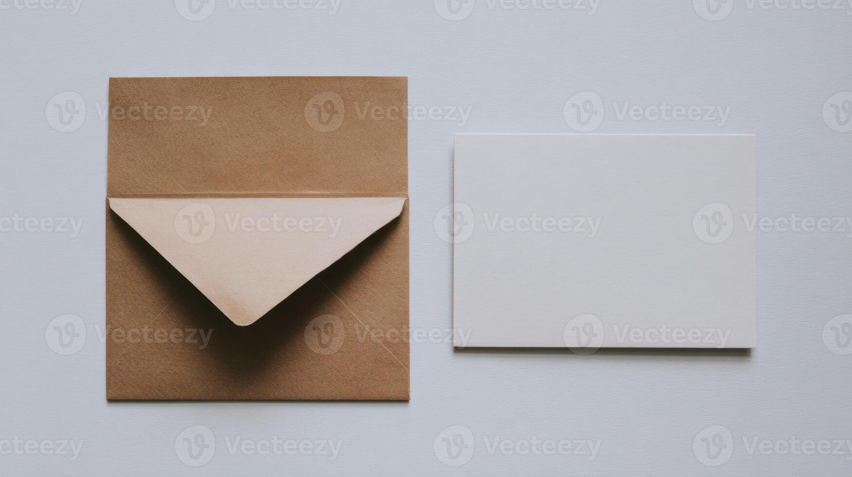 an open envelope and a blank card on a white surface Pro Photo