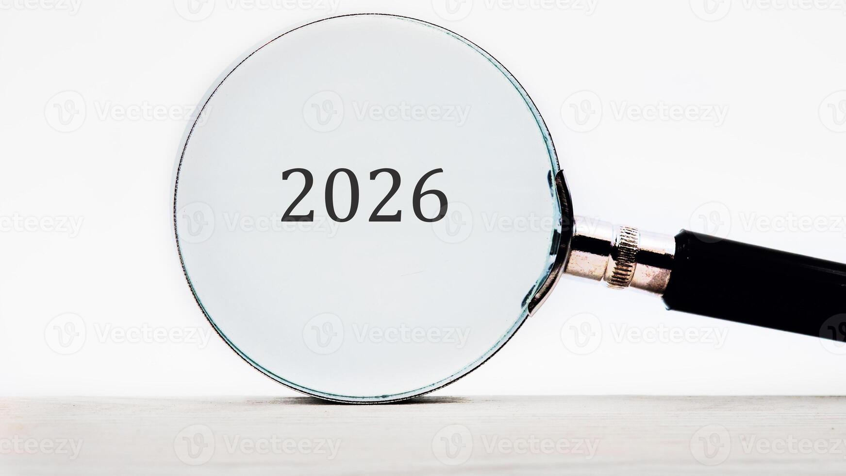 A magnifying glass is held over the number 2026, emphasizing the year and suggesting a closer look at what the future holds or the details within that specific time frame Pro Photo