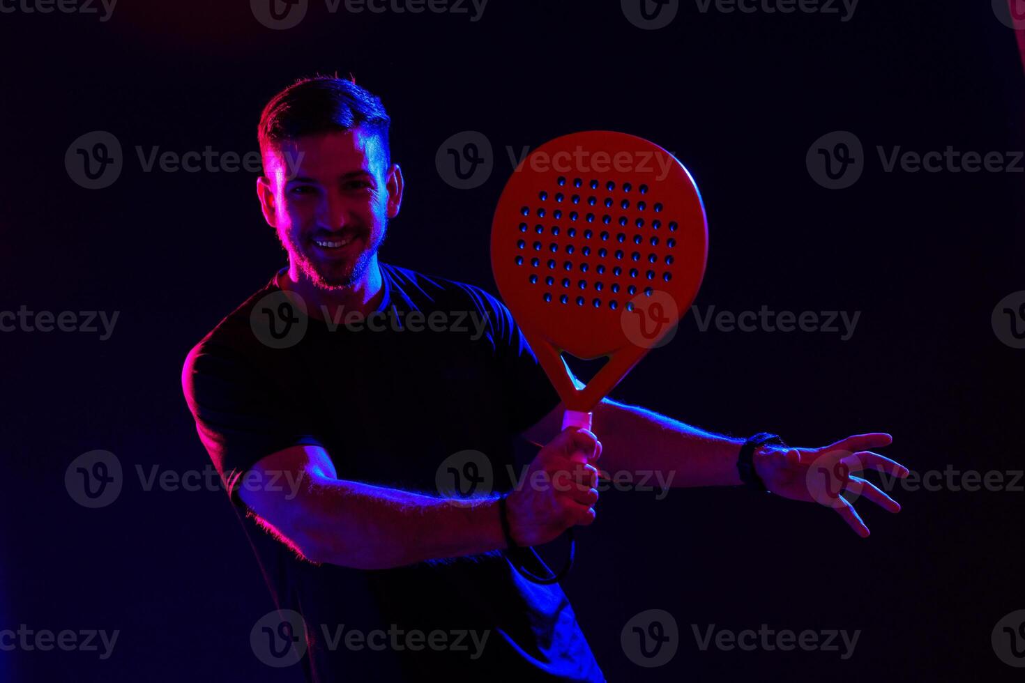 Man enjoying a game with a large paddle in a colorful, dynamic setting Pro Photo