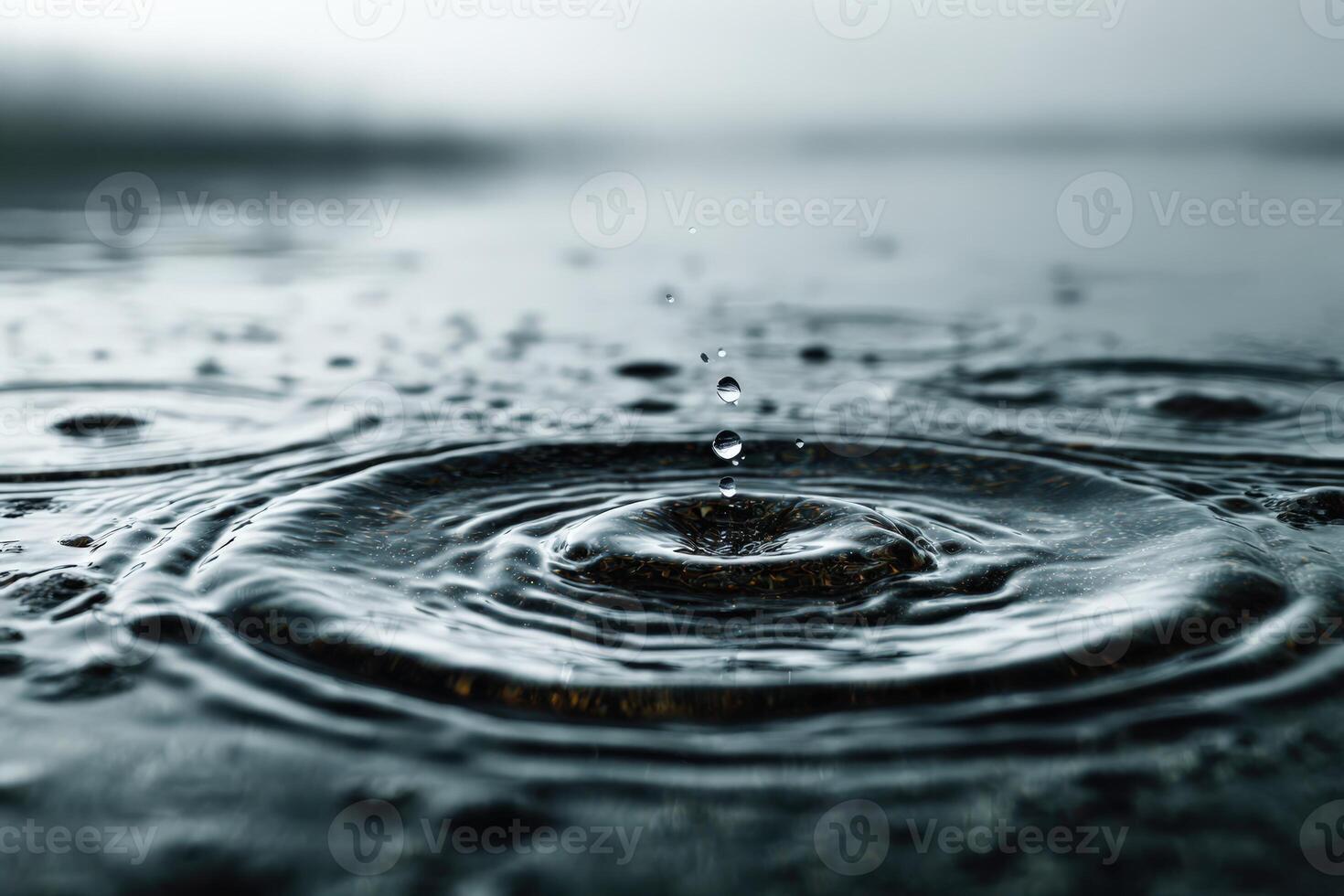 Close-up of water droplet creating ripples on a calm surface, showcasing the beauty of nature's elements and the tranquility of water in a serene environment Pro Photo