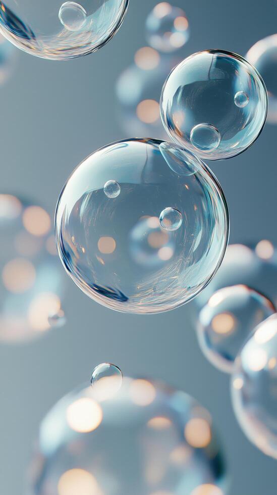 Floating Soap Bubbles Create Mesmerizing Reflections in a Tranquil Indoor Setting photo