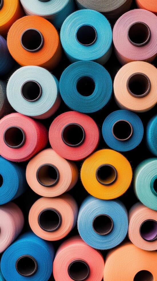 Collection of colorful spools of thread neatly arranged, representing vibrant ideas and possibilities. photo