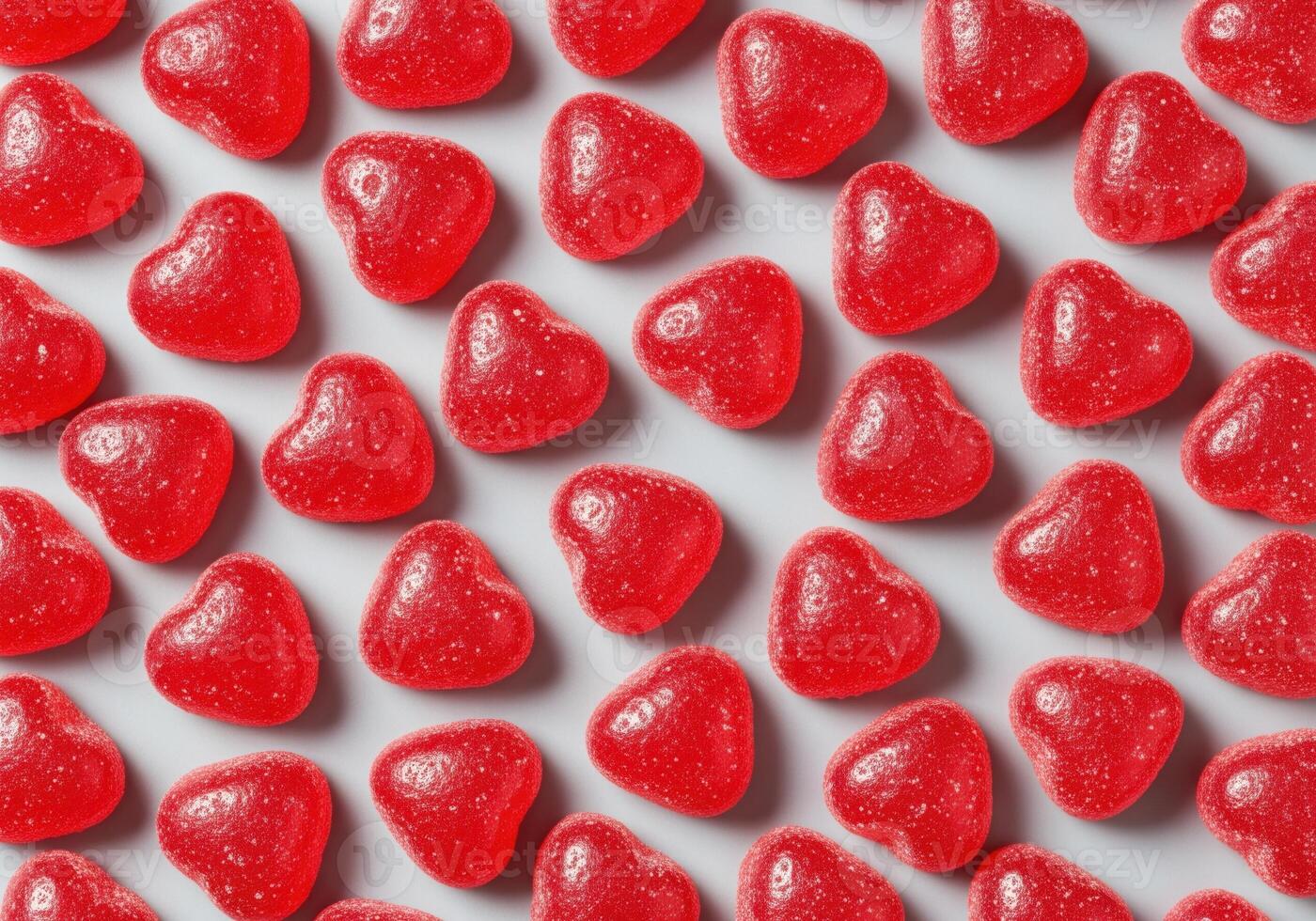 Vibrant red heart shaped gummy candies arranged in a dense continuous pattern. Pro Photo